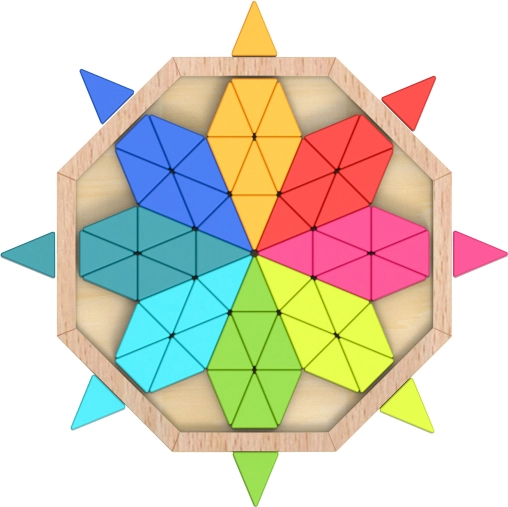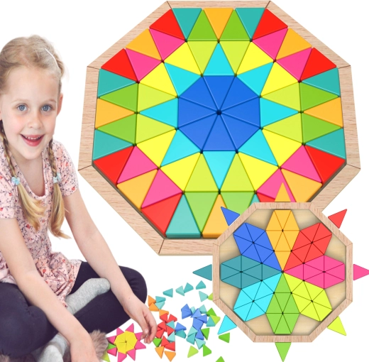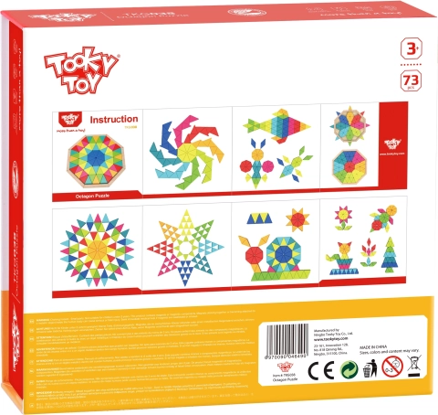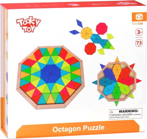 Découvrez un univers créatif avec la mosaïque en bois TOOKY TOY de 73 pièces. Les triangles colorés dans un cadre octogonal développent la créativité, l'imagination et la motricité fine. Le jouet e... Voir plus