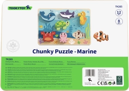 Le puzzle en bois Monde de la mer de Tooky Toy est un excellent jouet pour le développement de votre enfant. Il comprend les éléments suivants :