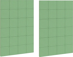 Deux panneaux verts avec un maillage serré de trous, idéaux pour le pixel‑art et les mosaïques avec des chevilles – développement de la créativité et de la motricité fine.