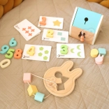 - trieur de formes en bois, chiffres avec cartes, blocs, jeu de laçage en forme de lapin