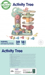 Arbre Actif WOOPIE GREEN est un ensemble éducatif soigneusement conçu, combinant jusqu'à quatre activités différentes, soutenant le développement global de l'enfant dès l'âge de 18 mois. Il comprend une tour à billes colorée, des engrenages sensoriels, un marteau de chevilles et des activités de couture créatives – tout cela dans une belle finition pastel, assuré par des matériaux sûrs et durables.