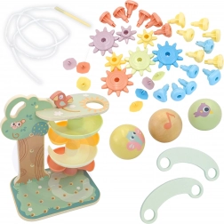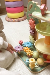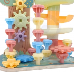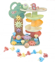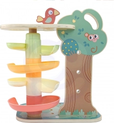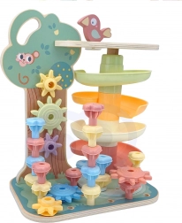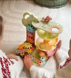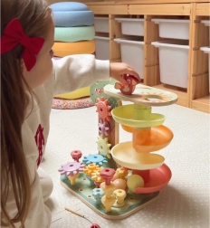 Observer les billes roulant sur les niveaux en cascade enseigne la concentration, le suivi des mouvements et procure beaucoup de plaisir.