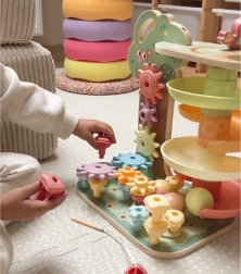 • Engrenages – Faire tourner et déplacer les roues offre des sensations tactiles, enseigne la mécanique et favorise le développement sensoriel