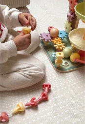 • La motricité fine – Manipuler des billes, chevilles et enfilage, l'enfant pratique la précision des mouvements de la main et des doigts
