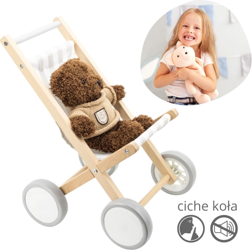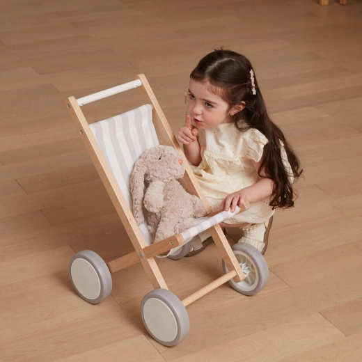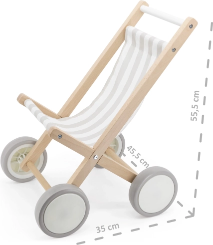La poussette est compatible avec les poupées et peluches jusqu’à 38 cm, ce qui en fait un accessoire apprécié de la chambre d’enfant. Son look naturel et épuré s’intègre parfaitement aux intérieurs modernes comme traditionnels.