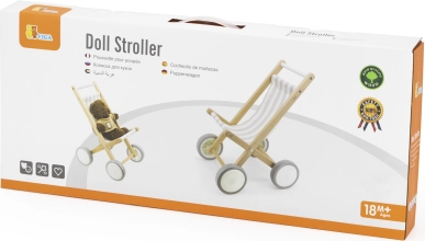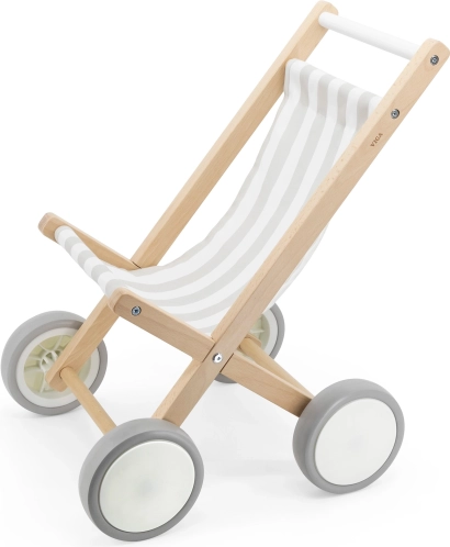 La poussette en bois élégante pour poupées de la marque VIGA est fabriquée en hêtre massif et équipée de grandes roues en plastique avec des pneus en caoutchouc antidérapants. Idéale pour les poupées jusqu’à 38 cm, elle stimule l’imagination ludique et le développement de la motricité des enfants dès 18 mois.