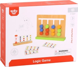 Le jeu logique amusant de TOOKY TOY développe la reconnaissance des couleurs, la pensée logique et la motricité fine. Les enfants déplacent des disques colorés selon les modèles des cartes et tentent de les assembler correctement dans le temps imparti par le sablier. Le set comprend un plateau cadré en bois, un sablier et 15 cartes recto-verso avec 30 motifs. Sûr, durable et idéal pour les enfants dès 3 ans.