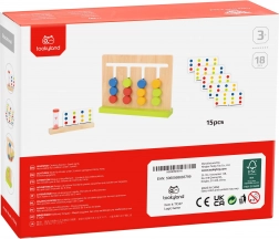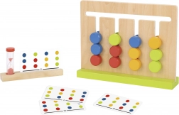 Ce jeu éducatif apporte aux enfants la joie de la découverte et entraîne la concentration. La tâche consiste, selon la carte choisie, à déplacer les disques colorés dans le bon ordre et à y parvenir dans le temps mesuré par le sablier. La fabrication en bois est agréable au toucher et la surface est traitée avec des peintures non toxiques.