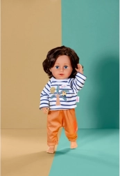 Ensemble stylé pour les poupées BABY born et l’ourson BABY born Teddy, alliant confort et design ludique. Comprend un T-shirt rayé à manches longues avec motif palmier et soleil, ainsi qu’un pantalon orange imprimé. La tenue convient aux poupées de 43 cm et s’enfile facilement grâce aux matières souples. Un cintre en matériau recyclé est inclus. Idéal pour un jeu créatif, un habillage facile et un divertissement durable.