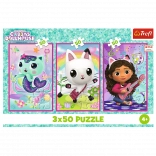 Puzzle 3x50 - Faites connaissance avec Gabby et ses chats est une collection amusante inspirée de l’émission Gabby’s Dollhouse. Assembler le puzzle n’est pas seulement amusant, c’est aussi un moyen de développer la motricité fine et l’imagination.