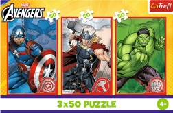 Découvrez un divertissement pour toute la famille avec trois ensembles de 50 pièces dans une seule boîte. 3 puzzles en 1, c’est plus de plaisir, de partage et de développement des compétences. Les motifs avec les héros DISNEY MARVEL THE AVENGERS – Captain America, Thor et Hulk – feront le bonheur de chaque jeune fan de super-héros.