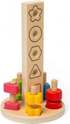 Ce jouet éducatif astucieux combine amusement et apprentissage. Les enfants peuvent visser les formes colorées sur le pic, les trier selon leurs contours sur la base et exercer leur pensée logique ainsi que leur perception spatiale. La conception en bois robuste et les peintures sûres garantissent une longue durabilité et un jeu en toute sérénité.