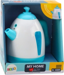 Bouilloire électrique pour enfants offrant une expérience de cuisine réaliste avec des effets tels que bouillonnement de l’eau, témoin lumineux et sortie de vapeur. Idéale pour les petits chefs !