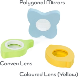 • Comprend un kaléidoscope et 3 lentilles différentes qui modifient la couleur, la forme et la taille du monde environnant