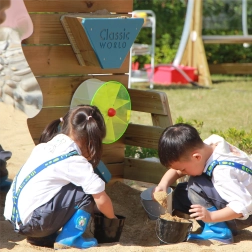 Ce jeu en bois développe la motricité fine, la pensée logique et la créativité. Les enfants peuvent verser du sable ou de l’eau dans les entonnoirs, observer le courant qui fait tourner le carrousel et s’écouler le long des goulottes, et découvrir les principes de cause à effet. Au centre, un film miroir en forme d’arbre stimule la perception sensorielle.