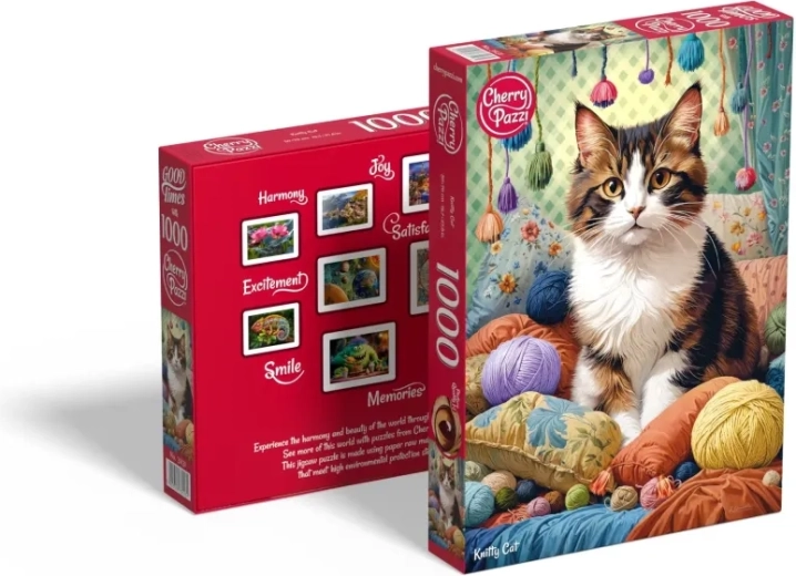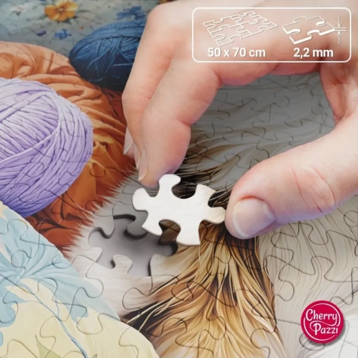 Profitez d’un moment de détente en assemblant un magnifique motif de chat jouant avec des pelotes de laine. Ce puzzle de qualité avec 1000 pièces offre des découpes précises, un papier agréable et, une fois terminé, forme une image d’environ 50 × 70 cm – idéale à encadrer.