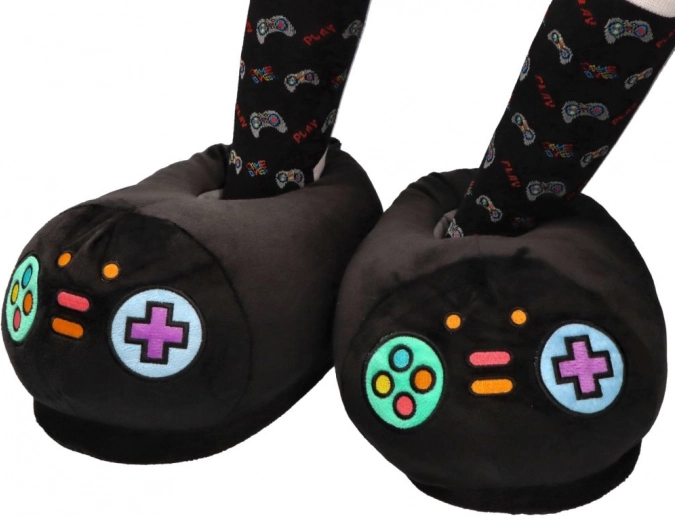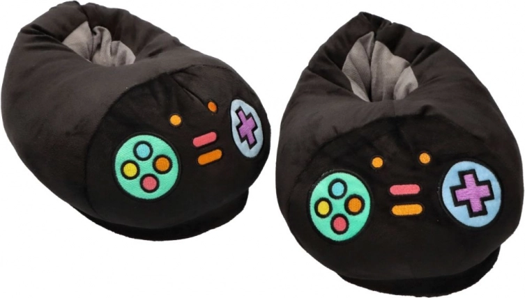 Enveloppez vos pieds de confort avec les pantoufles originales Let's Play. Leur rembourrage moelleux et leur peluche chaude assurent un bien-être durant les journées fraîches, tandis que la broderie colorée des boutons évoque les manettes rétro. Grâce à la face inférieure antidérapante, vous vous sentirez en sécurité chez vous, même sur les sols lisses.