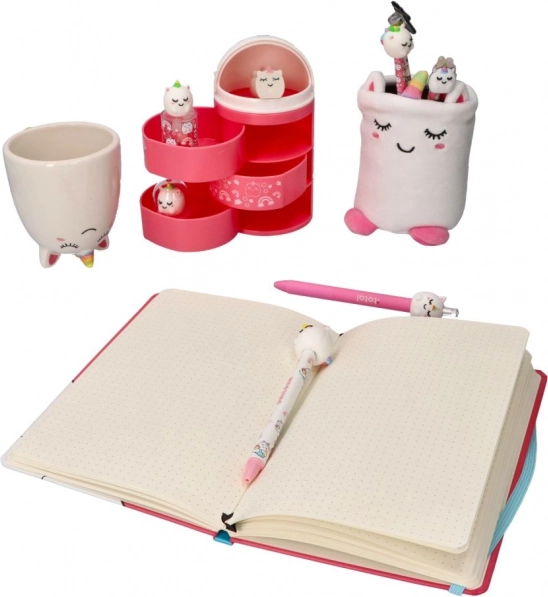 Une douce teinte rose avec un visage mignon et des détails de licorne apporte style et fantaisie à votre bureau.
