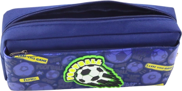 La trousse est fabriquée à partir de matériaux durables et résistants à l’abrasion, capables de supporter les exigences d’un usage quotidien. La finition bleu foncé avec une graphique dynamique de football en fait un excellent accessoire pour l’école et un cadeau original pour un jeune sportif.