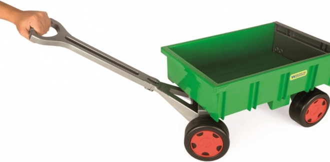 La remorque de la série Gigant est une aide idéale pour les jeux du quotidien. Grâce à sa structure solide et à sa grande capacité, les enfants transportent facilement jouets, sable ou feuilles. Le hayon ouvrant permet un chargement et un déchargement aisés, et la poignée fournie en fait une remorque parfaite à tirer.
