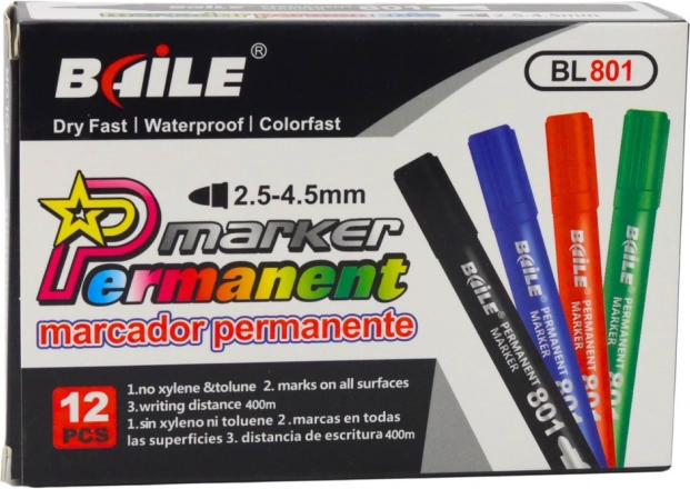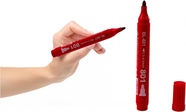 Marqueur permanent rouge universel avec encre résistante à l’eau et séchage rapide pour des marquages nets et durables sur diverses surfaces. Grâce à sa pointe biseautée 2,5–4,5 mm, vous tracez facilement des lignes fines comme épaisses. Convient au bureau, à l’atelier et à la maison.