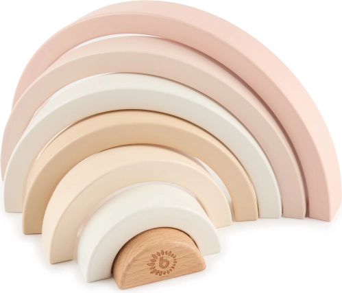 Ce minimaliste arc-en-ciel en bois deviendra un jouet préféré et un accessoire design pour la chambre d’enfant. Les enfants peuvent empiler les arcs, trier, construire des ponts et des tunnels ou les utiliser comme petites maisons et enclos pour figurines. Les formes simples stimulent l’imagination et le jeu autonome.