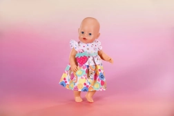 Rafraîchissez la garde-robe des poupées BABY born avec cette ravissante robe à imprimé fruité. Grâce aux détails à volants et à la ceinture amusante avec petite fraise, la tenue paraît fraîche et enjouée. S’adapte parfaitement aux poupées et à l’ours BABY born Teddy en taille 43 cm.