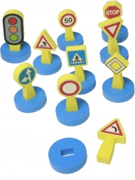 Panneaux de signalisation en matériau mousse, qui servent d'excellents outils didactiques ainsi que de bateaux ludiques dans la piscine.