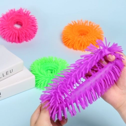 Ce bracelet hirsute est fabriqué en matériau caoutchouté doux et flexible, sûr pour les enfants et agréable à porter. Grâce à son design hirsute avec des excroissances multicolores, il offre aux enfants la possibilité de le presser et de l’étirer, ce qui peut aider à la concentration et à l’apaisement.