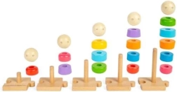 Empiler les anneaux et les têtes sur les tiges développe la préhension, la précision et la coordination œil-main – idéal dès 1 an.