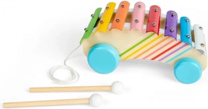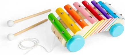 Grâce aux roues et à la corde, les enfants adorent promener le xylophone, renforçant ainsi coordination, équilibre et motricité globale.