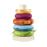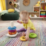 La pyramide sensorielle à empiler Fisher-Price est une version moderne du jouet classique, avec une base basculante et cinq anneaux de tailles différentes. Chaque anneau offre une expérience tactile unique – des matières souples aux structures marquées, en passant par des perles qui font du bruit. Les enfants développent leur dextérité par le jeu naturel : ils saisissent, secouent, trient et empilent.