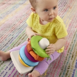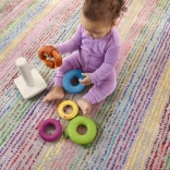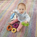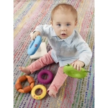 Chaque anneau apporte des stimulations différentes : rubans, matière souple, rainures marquées, textures variées et perles de hochet. Les enfants aiment attraper, presser et secouer.
