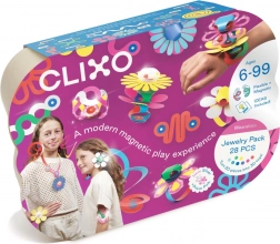 CLIXO Jewelry est un set thématique scintillant inspiré de l’origami qui utilise de puissants aimants pour relier différentes formes et créer des bijoux et accessoires originaux. Les longues bandes et les éléments floraux spécialement conçus permettent de former des spirales, des pendeloques et des ornements capillaires marquants. Les pièces sont résistantes à l’eau, légères et sûres – sans BPA ni phtalates.