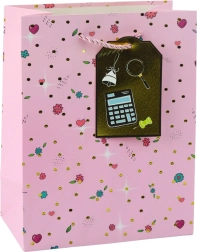 Sac cadeau pour des occasions scolaires exceptionnelles est magnifiquement conçu avec un motif moderne inspiré de motifs scolaires, qui attire l'attention et ajoute un caractère unique au cadeau. Fabriqué en carton décoratif de haute qualité, il assure durabilité et esthétique même lors du transport d'objets plus lourds. Les poignées en cordon doré offrent confort et sécurité lors du transport.