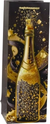 Vous cherchez une manière élégante d’emballer une bouteille de vin, de champagne ou une liqueur maison ? Ce sac cadeau en papier de qualité séduit par ses accents dorés brillants et son motif champagne, qui confèrent au cadeau une touche d’exception. Les poignées tressées en matériau de couleur dorée sont confortables en main et assurent un transport sécurisé.