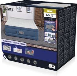 La technologie intégrée ALWAYZAIRE avec pompe électrique double gonfle le matelas en environ 4 minutes et maintient en continu la pression optimale. Le traitement de surface antibactérien Ultra-Fresh aide à protéger contre les bactéries et les moisissures. Sont également prévus la possibilité de regonflage avec une pompe manuelle en cas de coupure de courant, une valve à vis pour un dégonflage rapide, ainsi que des ports USB-A/USB-C pour recharger vos appareils.