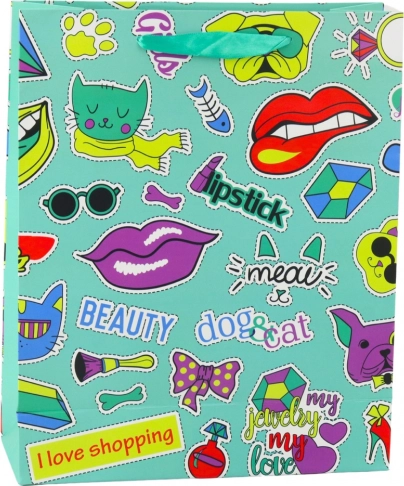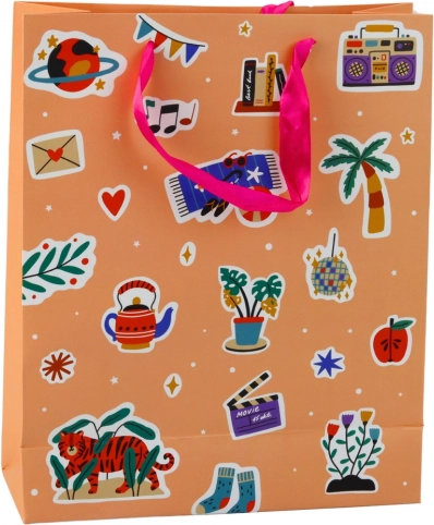 Un sac cadeau élégant avec un motif d’autocollants aux couleurs vives apporte une atmosphère moderne et ludique à chaque présent. Fabriqué en carton décoratif robuste et doté de solides poignées en cordon pour un transport confortable. Idéal pour les anniversaires, les rencontres entre amis et les cadeaux pour adolescents.