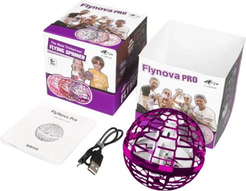 Le jouet est alimenté par un accumulateur rechargeable via le câble USB fourni, ce qui élimine le besoin de remplacer les piles. L’emballage comprend une télécommande qui facilite le pilotage confortable de la balle, permettant d’allumer et d’éteindre le jouet en toute simplicité.