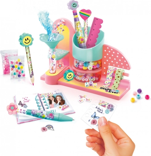 Le set de bureau pour fournitures Style4Ever transforme chaque espace de travail en zone créative. Les enfants peuvent personnaliser le porte-crayons et d’autres accessoires à l’aide d’autocollants, de perles et de sachets décoratifs. Tout est conçu pour un résultat unique et pratique.