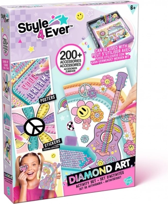 Recharge Style4Ever pour peinture diamant : 2 feuilles d’autocollants, 2500+ strass, applicateur, plateau, cire et organiseur. Super divertissement dès 6 ans.