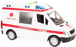 En appuyant sur les boutons colorés, l’ambulance déclenche des effets lumineux et des sons de moteur, de sirène et de klaxon, qui transforment chaque trajet en intervention pleine d’action.