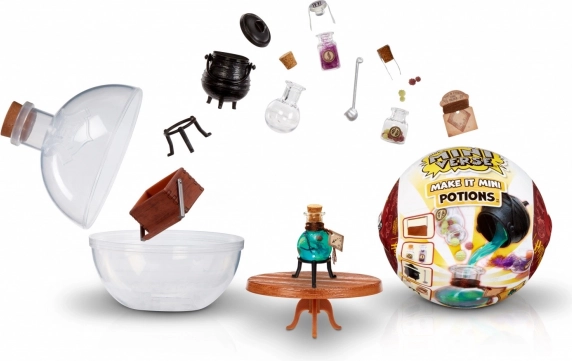 Chaque boule se transforme également en réplique de flacon de potion, assortie à la mini table fournie. La collection comprend aussi des mini béchers, chaudrons, cuillères, bougies et flacons – idéal pour créer et collectionner.