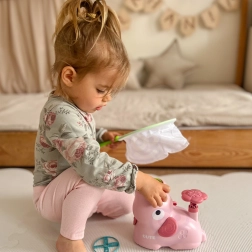 Le design attrayant de l’éléphant rose motive les enfants à jouer et à entraîner leur coordination chaque jour.