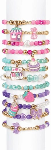 Associez des perles colorées et de jolies breloques sur le thème des desserts pour concevoir des bijoux uniques pour vous et vos amis.