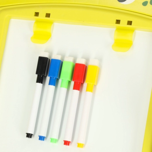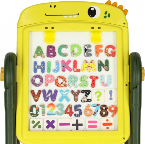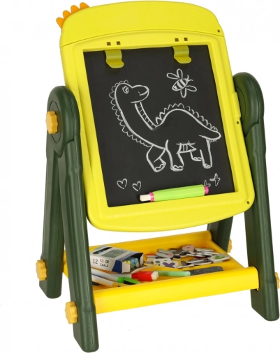 Ce tableau éducatif double face est l’outil idéal pour développer la créativité et l’apprentissage des enfants. Un côté présente une surface blanche magnétique permettant de dessiner et d’écrire au feutre effaçable à sec, tandis que l’autre côté sert de tableau noir classique pour dessiner à la craie. Orné d’un motif de dinosaures joyeux, ce tableau séduit chaque enfant par ses couleurs et ses multiples usages.