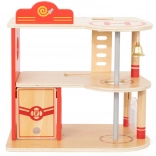 Cette robuste caserne de pompiers en bois à trois niveaux offre des heures d’action aux enfants dès 3 ans. Au rez-de-chaussée se trouvent un garage pour le camion de pompiers et un espace pour l’équipement, au deuxième étage une zone de repos confortable avec sonnette et barre de descente rapide, et le troisième étage est doté d’un héliport pour l’hélicoptère des pompiers.