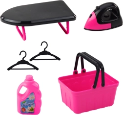 En plus de la machine à laver, l'ensemble comprend un fer à repasser, une planche à repasser, un panier à linge et d'autres accessoires qui permettent aux enfants de jouer à laver, repasser et étendre le linge. Tout est sûr, fabriqué à partir de matériaux de qualité et conforme aux normes européennes.