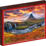 Le Puzzle Cascade Kirkjufellsfoss vous transporte dans un lieu magique d'Islande, où la cascade en cascade présente sa beauté naturelle. Un design élégant et des couleurs fidèles offrent une expérience vivante de couleurs et de détails.