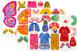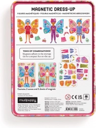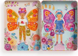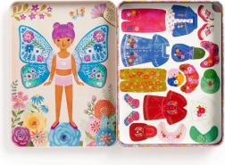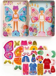 L'ensemble comprend deux scènes illustrées avec des demoiselles papillons qui attendent d'être habillées. Essayez plus de 40 magnets avec des vêtements et des ailes de papillons sur trois cartes. Chaque pièce peut être combinée selon votre propre imagination.